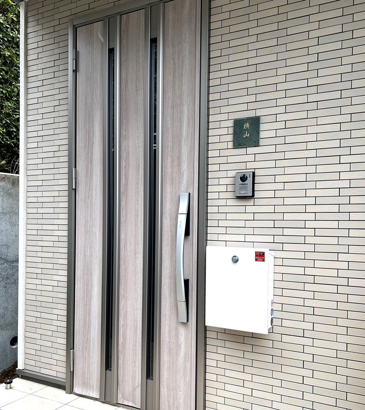 タイルの色味と文字が玄関の雰囲気を引き立ててくれて満足しています。ありがとうございました。