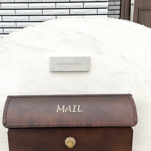 ネットで沢山表札を調べている中でカロカロウさんに出会い、一目惚れ。オシャレで高級感のある、周りとひと味違った表札を作っていただけました。何よりサイズがぴったり!自分でテープとボンドで取り付けましたが迷うことなく簡単に付けることができました。レイアウトのやり取りから届くまで1ヶ月半と長かったですが待った甲斐がありました。