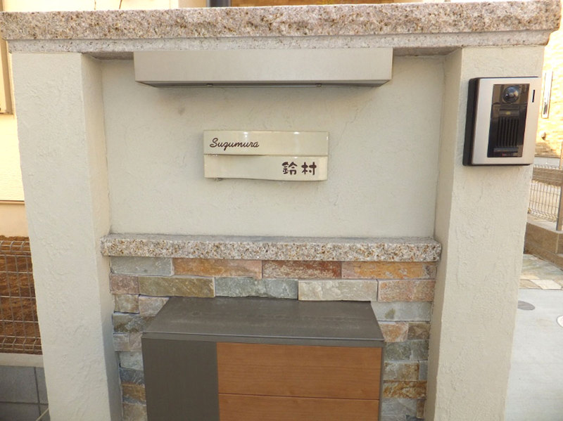 表札の取り付け事例(商品名:デザイン表札セラウェーブホワイト)